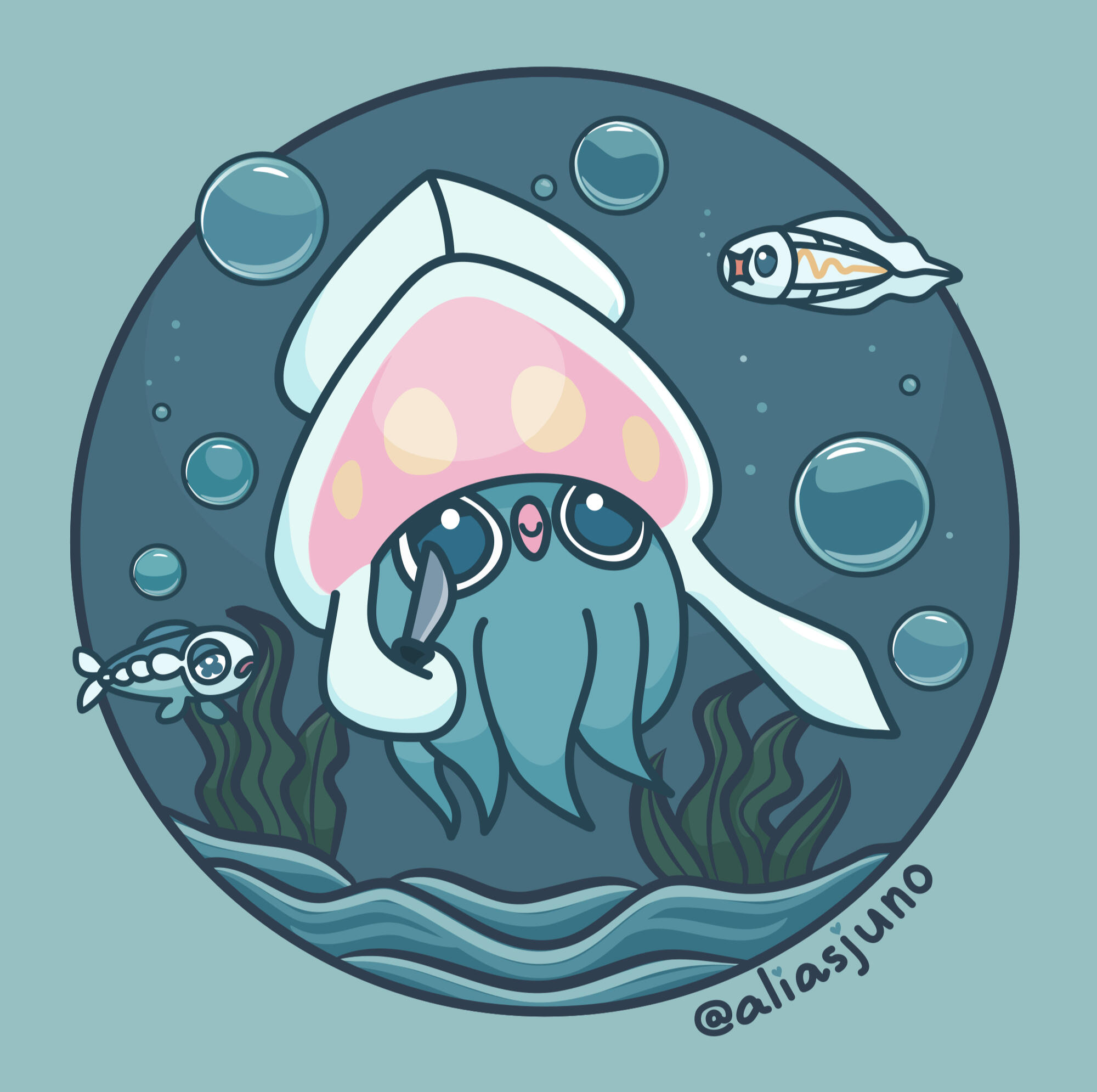 Hello, I'm Karen! I go by Juno in a lot of online spaces - it was a name I picked during that one brief Roman mythology phase everyone goes through and it stuck with me as a convenient alias in video games, forums, etc. When that started being hard to get on larger platforms, it gradually morphed to aliasjuno, which I use across most platforms now!I've loved arts and crafts for as long as I can remember - as a kid, my parents would hand me a pen and a napkin at restaurants as an easy way to keep me busy, and over the years, I’ve picked up other crafty hobbies like sewing, embroidery, and pottery. None of which I'm particularly great at, but all of which I enjoy! I always come back to doodling, though, it's the easiest way to relax, unwind, and have a bit of fun. I wanted to share some of my drawings online for others to enjoy, too!My logo right now is based on my cat! He's my muse and always looks slightly pissed off (he's not though, he just looks like that), so the logo reflects that.