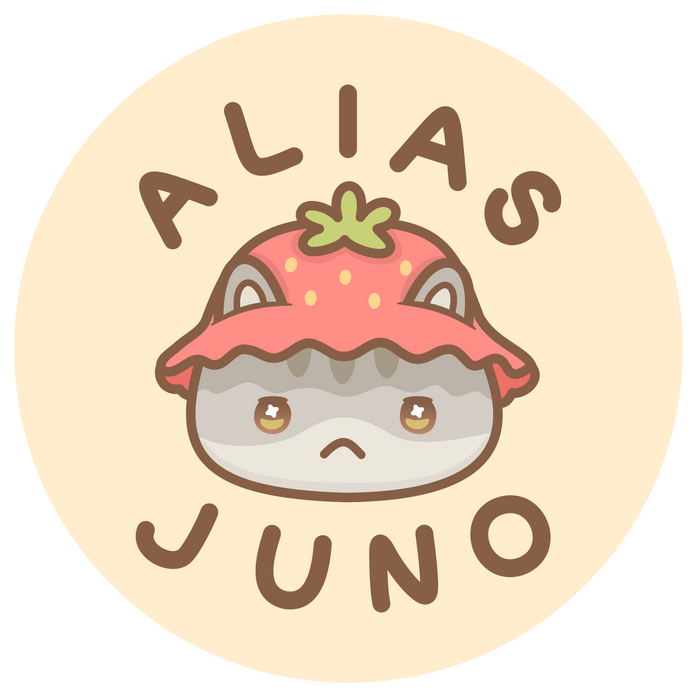 Hello, I'm Karen! I go by Juno in a lot of online spaces - it was a name I picked during that one brief Roman mythology phase everyone goes through and it stuck with me as a convenient alias in video games, forums, etc. When that started being hard to get on larger platforms, it gradually morphed to aliasjuno, which I use across most platforms now!I've loved arts and crafts for as long as I can remember - as a kid, my parents would hand me a pen and a napkin at restaurants as an easy way to keep me busy, and over the years, I’ve picked up other crafty hobbies like sewing, embroidery, and pottery. None of which I'm particularly great at, but all of which I enjoy! I always come back to doodling, though, it's the easiest way to relax, unwind, and have a bit of fun. I wanted to share some of my drawings online for others to enjoy, too!My logo right now is based on my cat! He's my muse and always looks slightly pissed off (he's not though, he just looks like that), so the logo reflects that.
